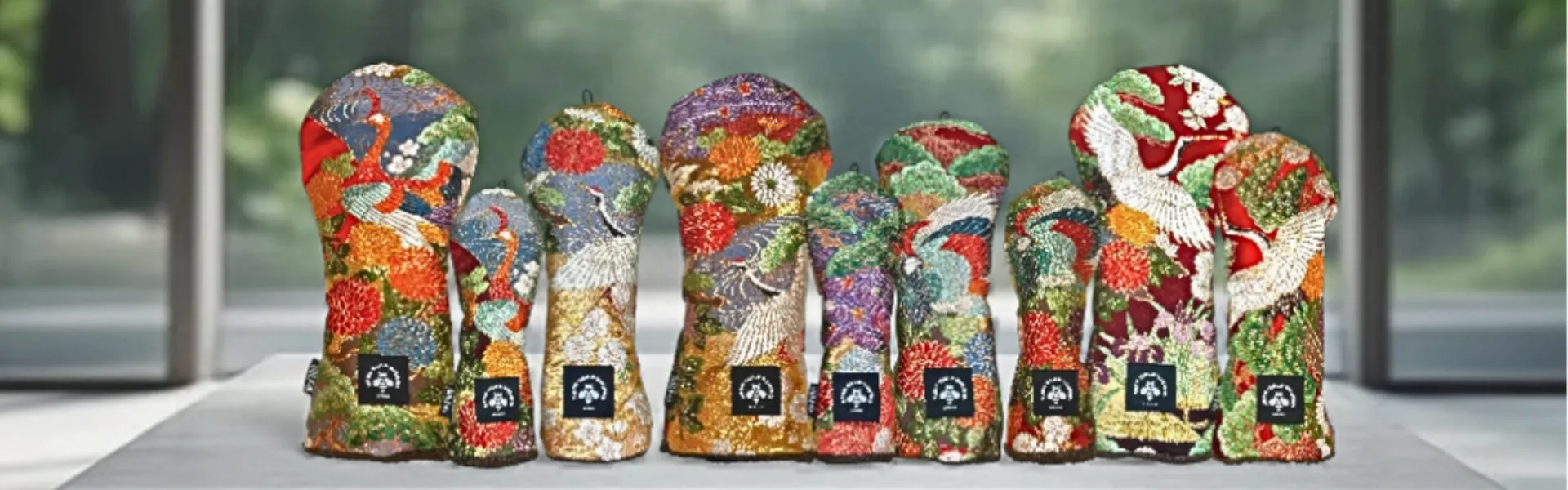 アンティークの帯やヴィンテージ生地など、古い布地の美しい柄を活かしたアイテムづくりを進めています。機械を使わずに職人が一つずつ丁寧に縫い上げているため、細部までこだわった温かみのある仕上がりが特徴です。ご自身のクラブに合うヘッドカバーをネットでご覧になりながら、お好みのデザインをお選びいただけます。